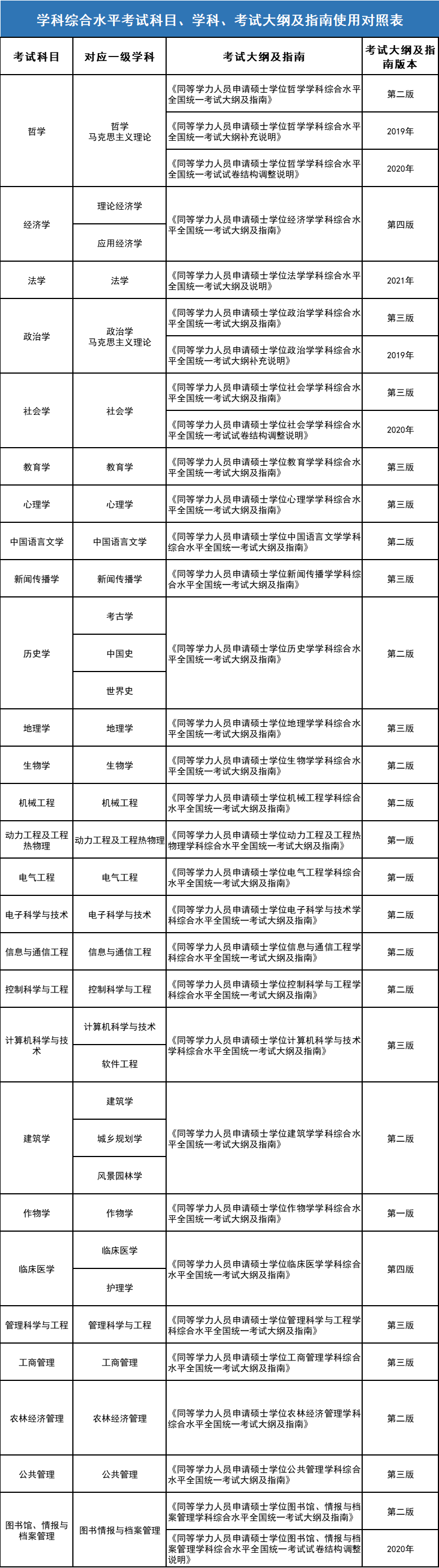 申請學(xué)科在附件2所列學(xué)科范圍內(nèi)的同等學(xué)力人員,須參加全國統(tǒng)一組織的學(xué)科綜合水平考試,考試科目、所用考試大綱及指南見附件2。