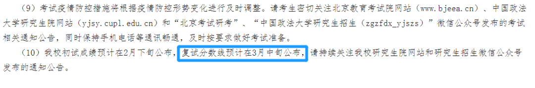 中國政法大學在官網(wǎng)公布:復試分數(shù)線預計在3月中旬公布。