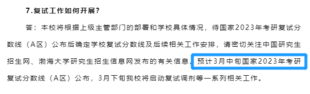 渤海大學官網(wǎng)公布:預計3月中旬國家2023年考研復試分數(shù)線(A區(qū))公布,3月下旬我校將啟動復試調劑等一系列相關工作。報考渤海大學的同學們要注意啦,從官方通知來看,國家線公布一周后,渤海大學就要開啟復試和調劑工作,時間點一定要注意哦!