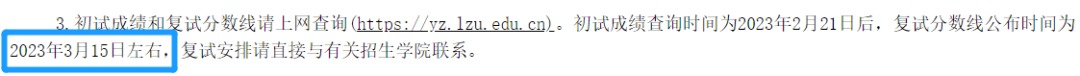 蘭州大學表明會在3月15日發(fā)布自劃線,近兩年,國家線都在院校自劃線后進行發(fā)布。綜合考慮以上信息,可以表明國家線公布時間應該在3月15日-3月17日之間。