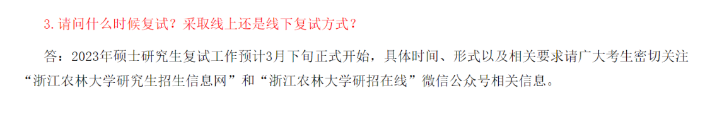 浙江農(nóng)林大學官方發(fā)布:2023年碩士研究生復試工作預計3月下旬正式開始。